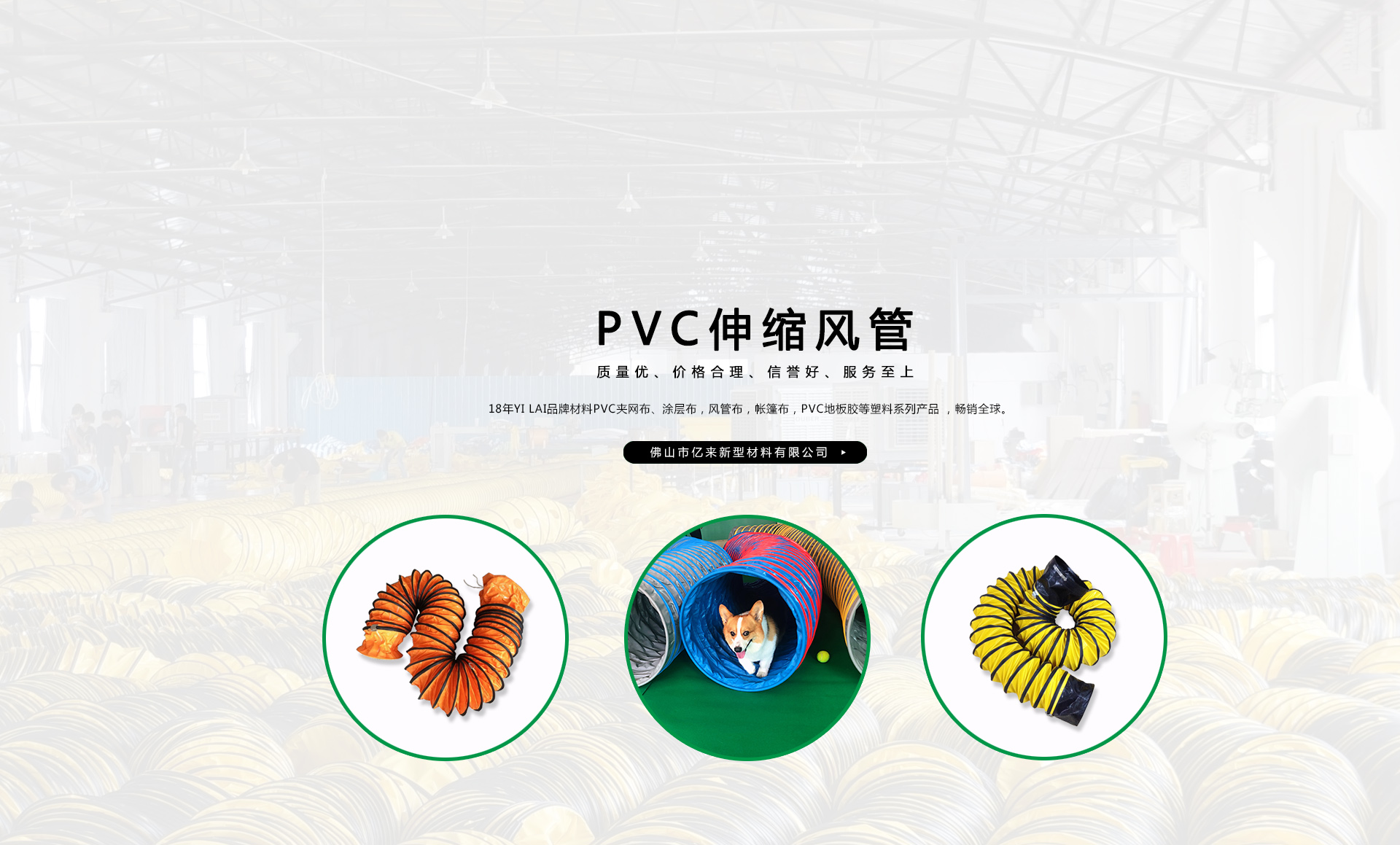 創(chuàng)建“YILAI品牌”近20年來,產(chǎn)品質(zhì)量穩(wěn)定提高,生產(chǎn)及經(jīng)營的產(chǎn)品包括PVC夾網(wǎng)布、PVC彩條布、PVC風(fēng)管布、PVC涂層布、PVC籬笆圍護(hù)欄布、PVC透明夾網(wǎng)布、PVC伸縮風(fēng)管、車縫風(fēng)管、寵物管、耐高溫風(fēng)管、地下室通風(fēng)管,保溫通風(fēng)管、空調(diào)排風(fēng)管、正負(fù)壓通風(fēng)管、三通/四通排風(fēng)管、防靜電風(fēng)管、隧道風(fēng)管、PVC地板膠等系列產(chǎn)品在市場上得到廣大客戶認(rèn)可,暢銷歐美、東南亞、非洲、中東等國外市場。